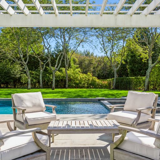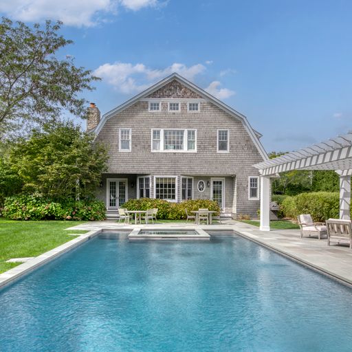 Built in 2001 with a traditional shingle exterior, this Hamptons-style “cottage” was renovated by the current owners in 2016 with contemporary updates throughout. As a second home, Gundersen said the 6,600-square-foot, six-bedroom house has been “lightly used.” It sits on just over an acre ringed by perennial plantings, such as hydrangeas and other flowering shrubs, and specimen trees. There’s also a tennis court and a heated gunite pool with an integrated spa.