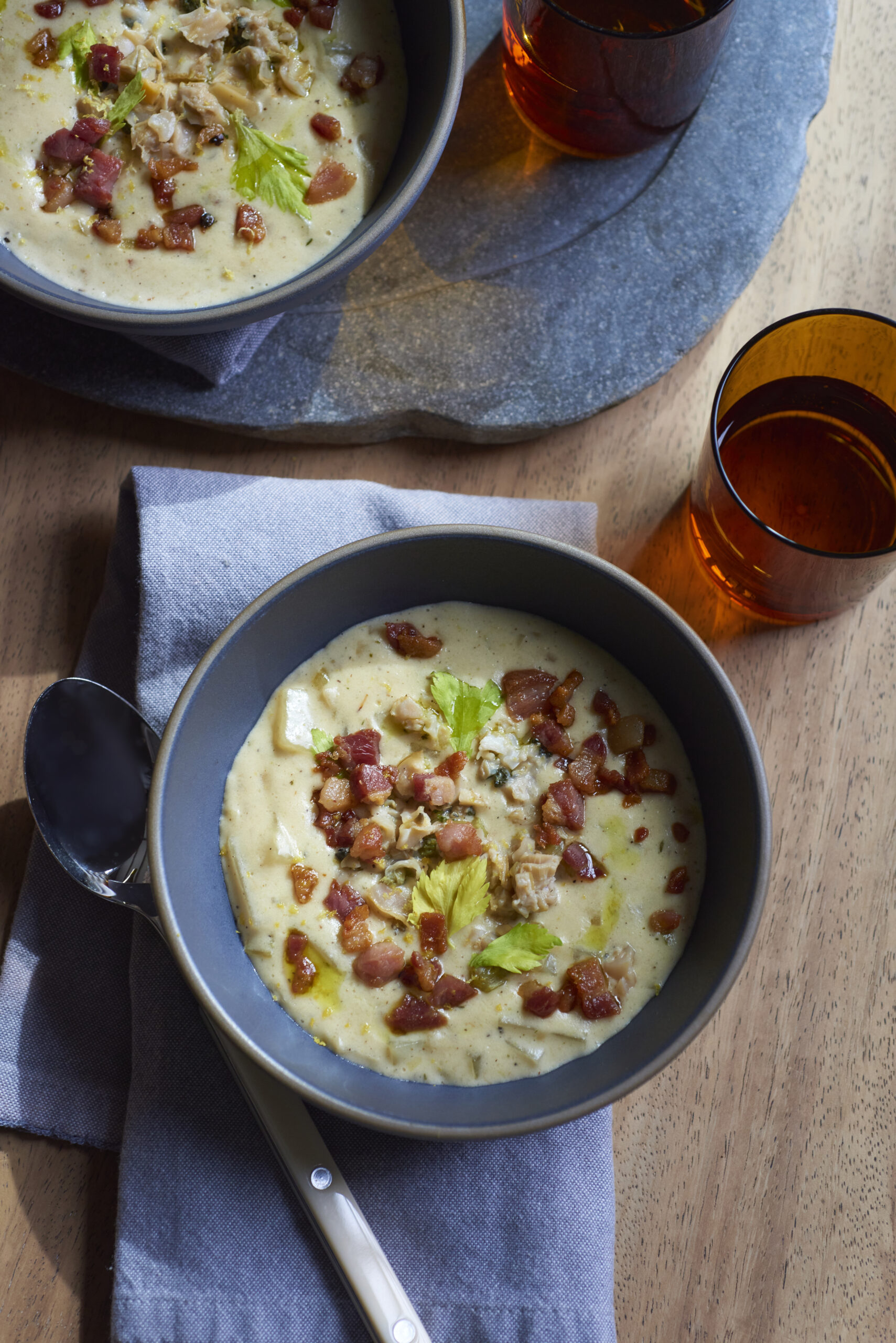 Here, the Philadelphia-born chef opts for blended potatoes as a natural thickening agent, with just a touch a cream added toward the end of cooking, which still provides a base that’s satisfyingly creamy but not overwhelmingly so.
