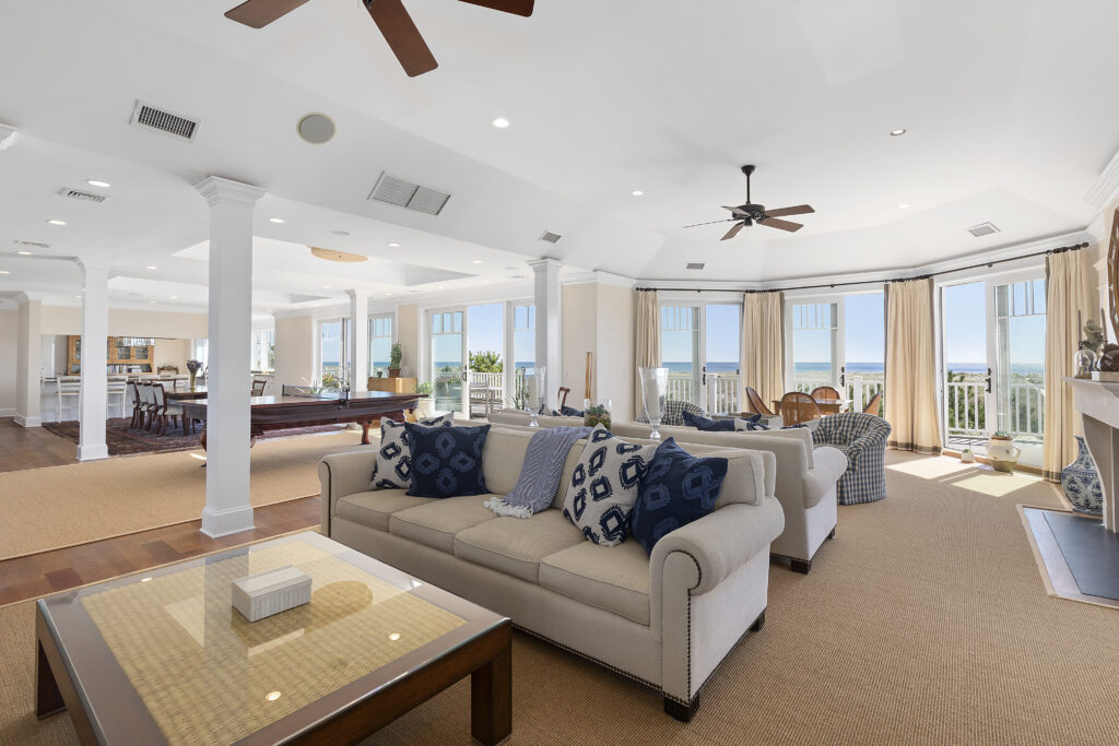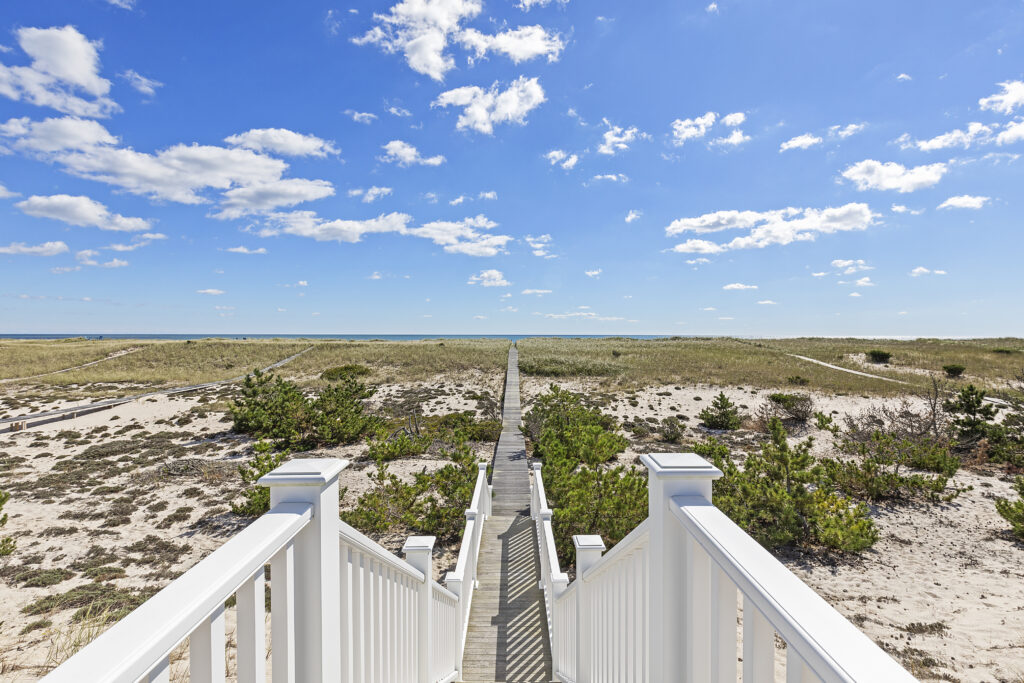 And then there’s the ocean—the “real kicker,” Farrell says, referring to the deeded access to the water. A private wooden walkway extends approximately 300 feet from the house to the beach through native beach vegetation and grass.