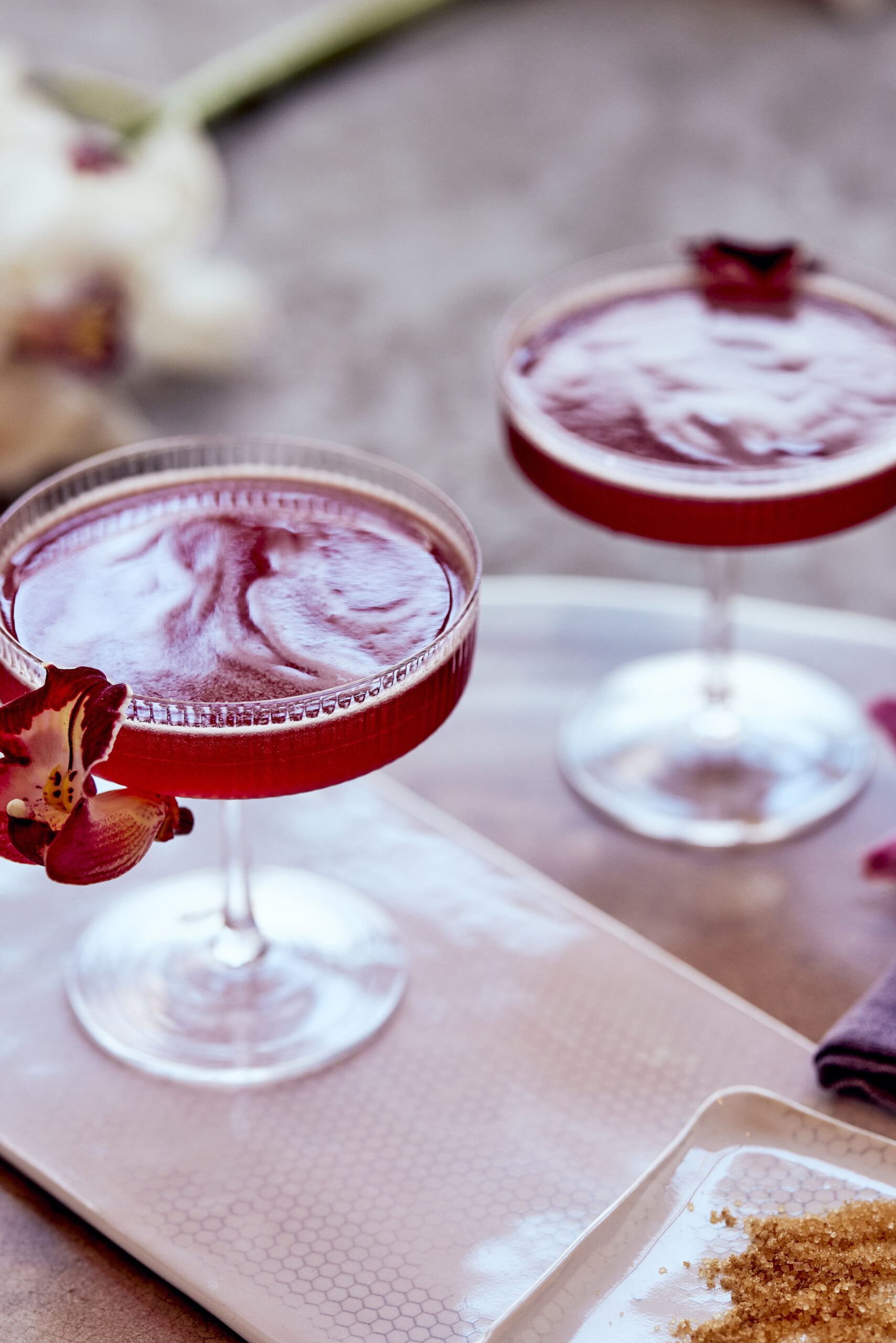 - In a shaker with ice, combine all ingredients. Shake well for 10 to 15 seconds and double strain into a coupe glass. Garnish with the edible flower. Cheers!