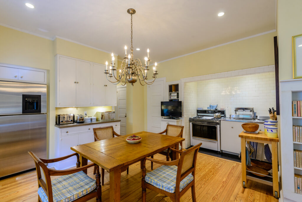 The kitchen is divided into three sections: the 420-square-foot main area, an eat-in breakfast nook and a butler’s pantry. Set off from the kitchen is the former staff wing, a small suite consisting of a bedroom, bathroom, sitting room and another bonus room suitable as an office or bedroom. It offers access into the three-car garage. The sitting room offers access to the terrace and the exterior grounds, making this an independent unit that has shared access to the kitchen.