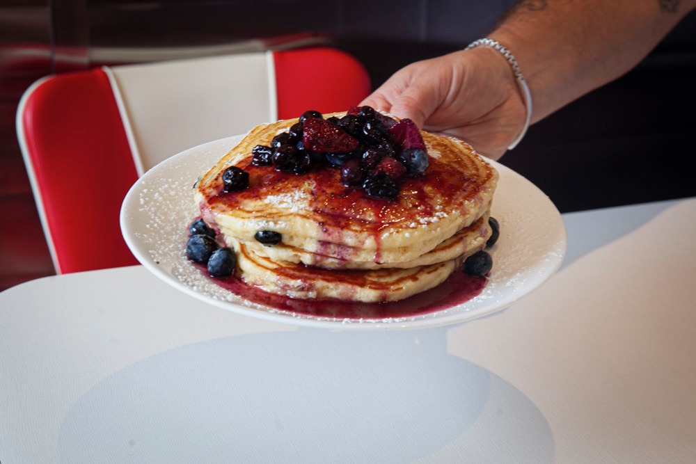 The kitchen is a throwback of vintage-style appliances, from a mint-and-chrome coffee maker and toaster oven to a royal blue refrigerator. There’s even a legit diner nook, with booth table and benches purchased from Sag Harbor’s La Superica restaurant when it went out of business. “I just knew I had to have it for my kitchen!” she says.