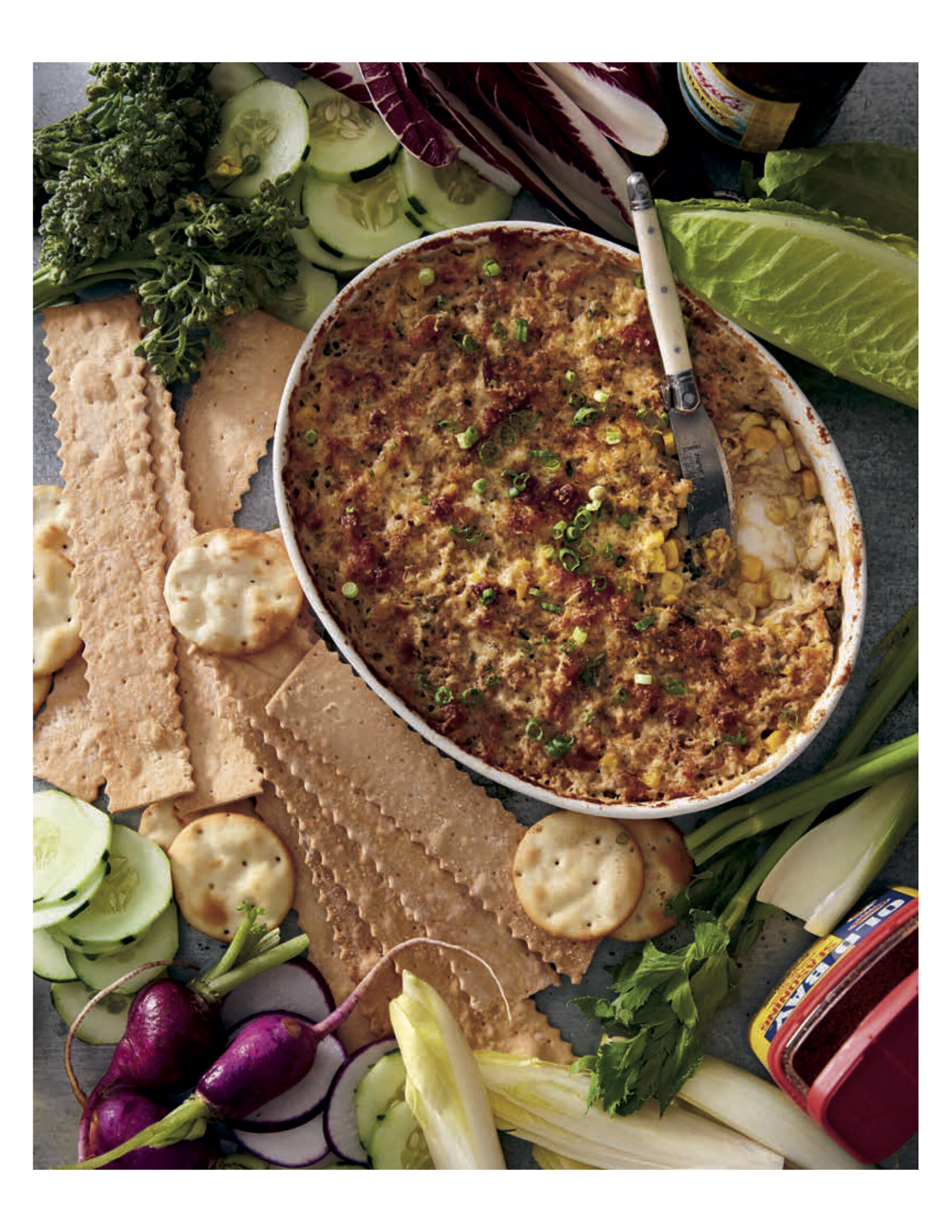 “Creamy baked dips are always a hit,” assures Heuck, “and with fresh crab and corn kernels off the cob, this one feels especially luxurious… and practical.”