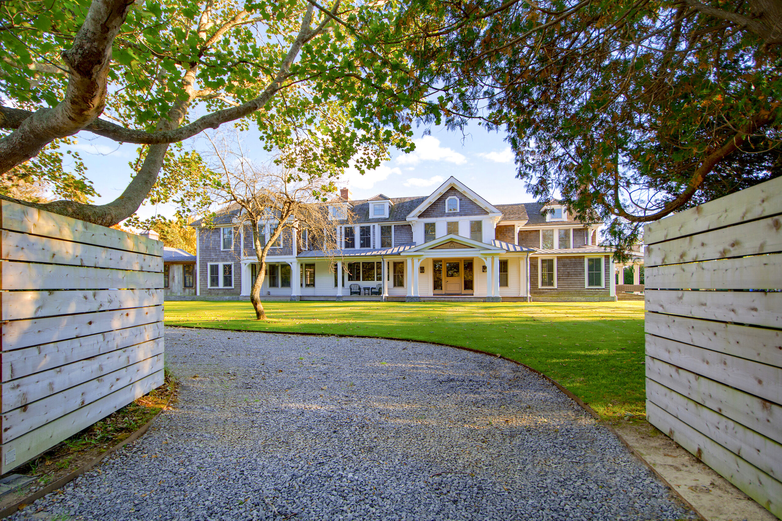 “This is considered one of the premier roads in Water Mill and could be considered the estate section of Water Mill,” Grant says. “It’s a proportionately nice property — you don’t feel like you’re squished in between the two houses and garage and with three acres; you have lots of lawn.”