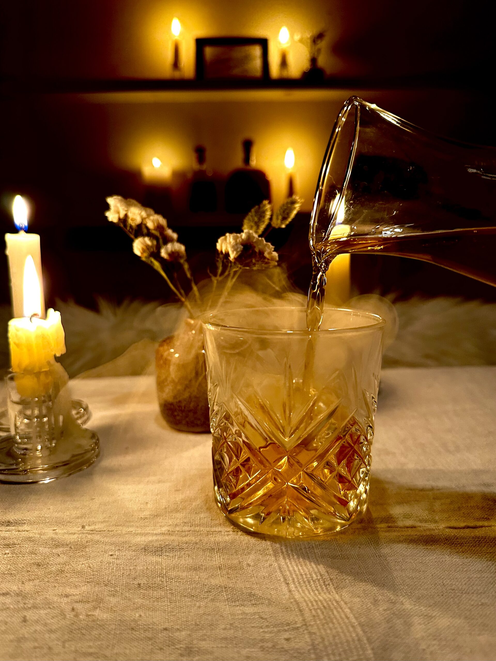 “Once I’m table side, I flip the glass over and pour the drink from a little carafe while the smoke emits from the glass.”