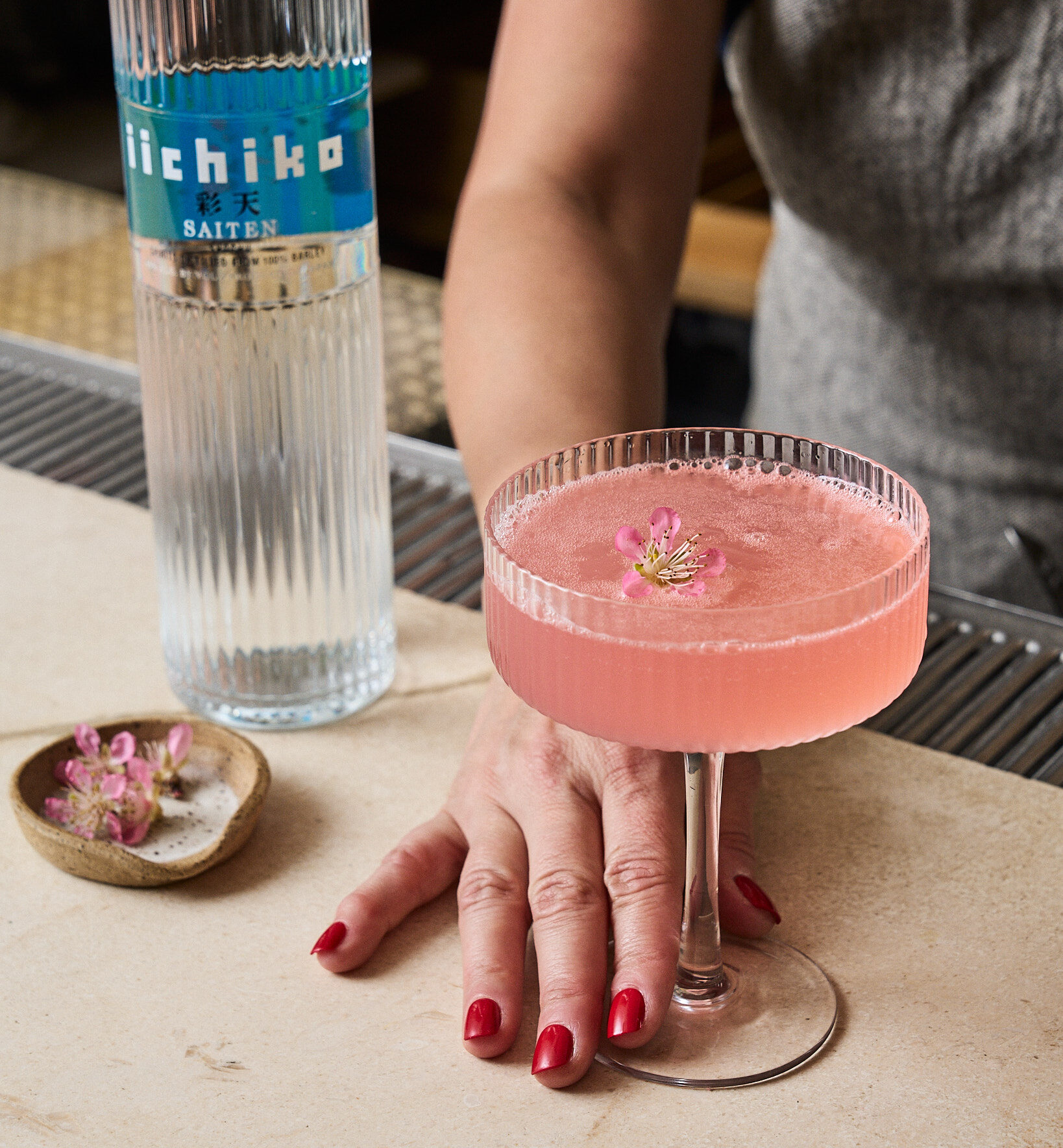 - 3/4 oz cherry blossom syrup (or rose syrup — Marrero recommends Monin)