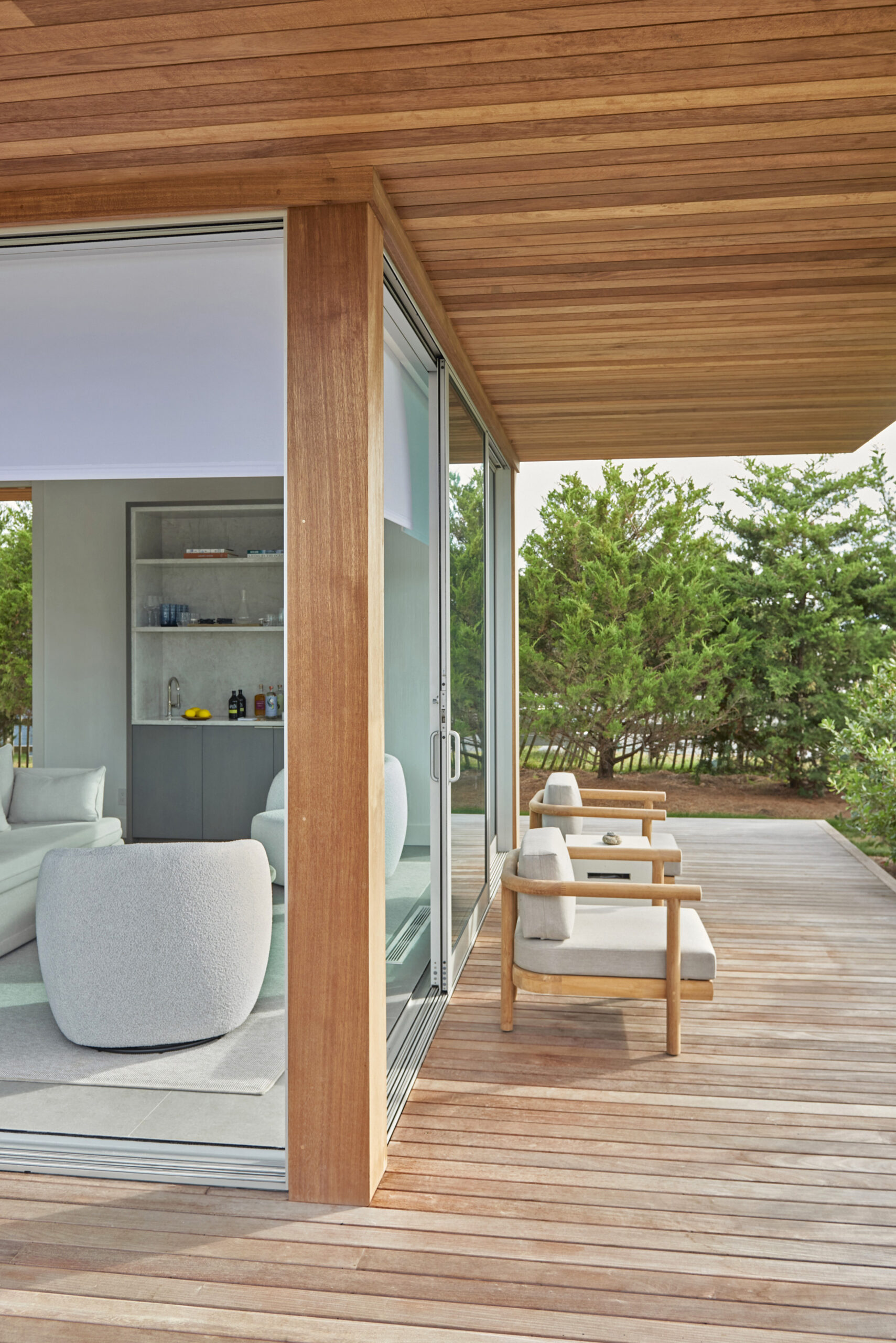 With an exceptional eye for flow, the designer’s vision for how guests will move around the various spaces and how they will be used is evident in the cottages’ private decks and outdoor furniture choices. “Working closely with Thayer’s Hardware [in Bridgehampton], we were able to customize each piece of deck furniture to make sure the outdoor and indoor spaces were equally thoughtful and luxurious,” Fenwick says.