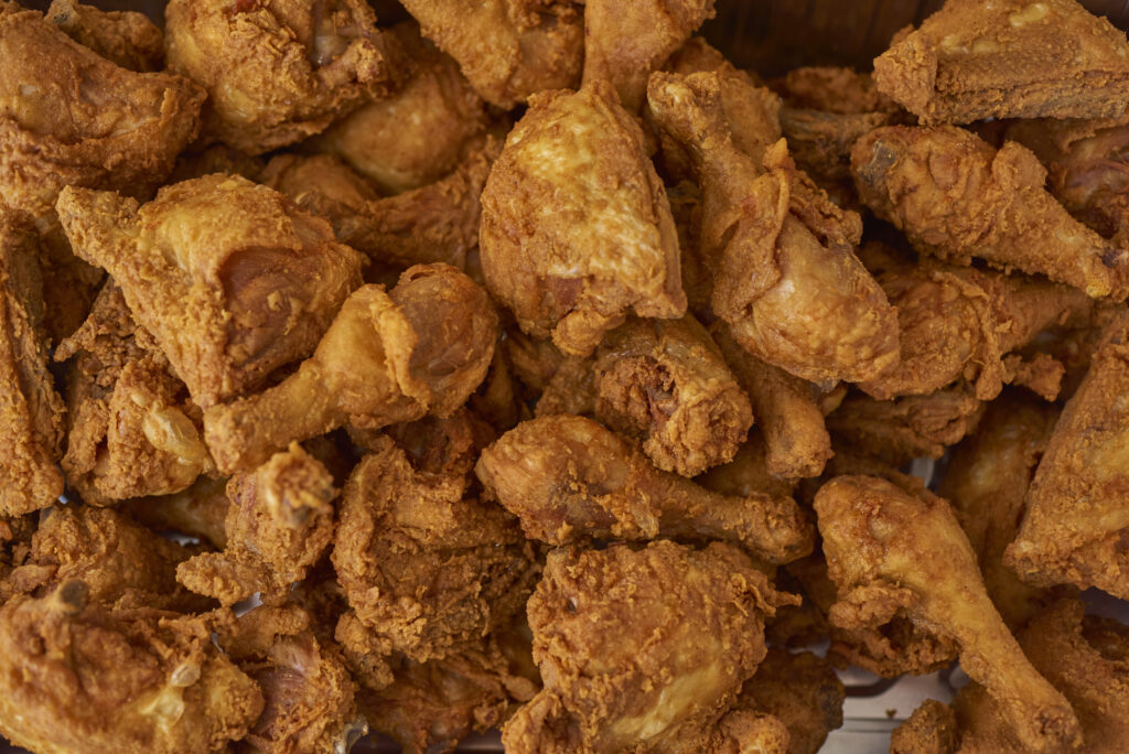 - 3 boneless fried chicken breast halves, shredded (be sure to include crispy skin bits)