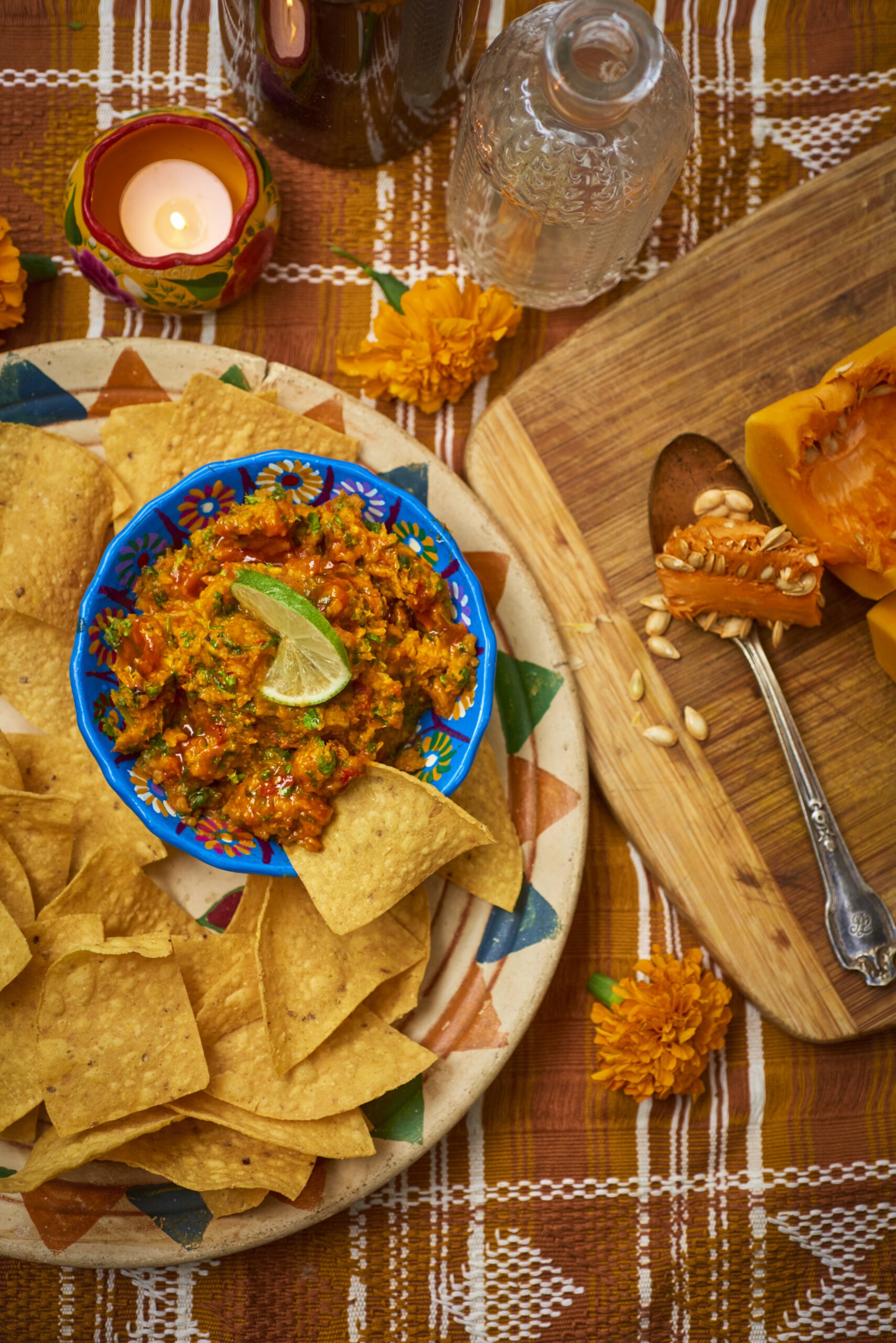 You’re going to need a versatile snack to get you through it all. Whether you crave a quick nosh while waiting for trick-or-treaters, or you’re hosting a celebration of life and memory, this butternut squash salsa pulls double duty.