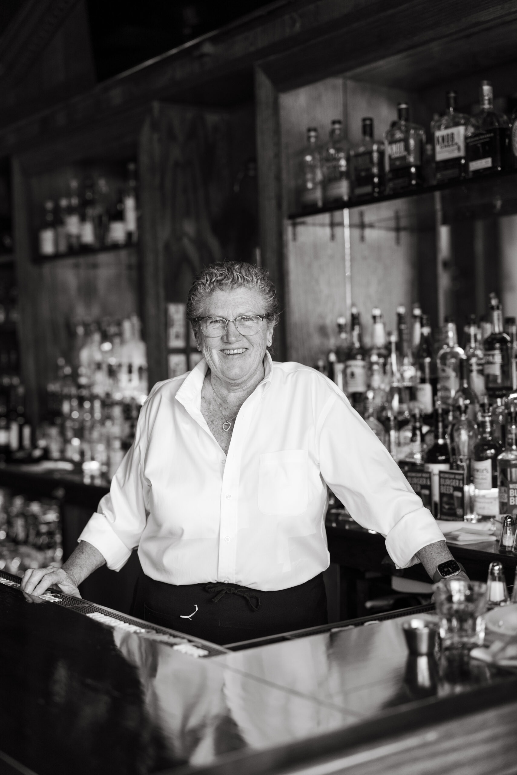 Walk under the old green awning into the railway-car-sized space and a dark mahogany bar is immediately to your right, some coat hooks to the left. Under your feet is black and white linoleum. The art deco-ish back bar — built by Maureen’s father and grandfather — is as it was when the place opened. Above the cash register, etched in frosted glass, is the silhouette of an elephant, its tail facing the door for good luck. (“At a lot of the bars in the ‘50s you’d see it,” explains Donohue-Peters.)