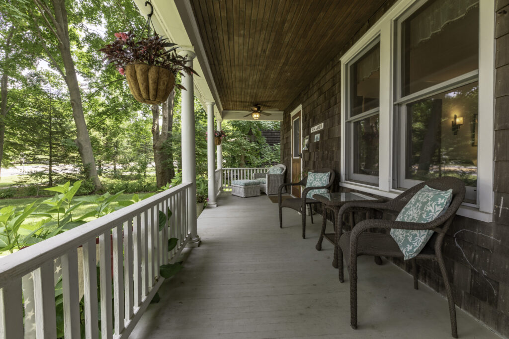 The home is entered through a covered wrap-around, rocking-chair porch into a classic foyer with the original staircase and trim intact. The original pocket doors lead to the living room with a corner fireplace, and the dining room follows, leading to the kitchen in the back with an adjacent pantry, mudroom and half bath. There is an ensuite bedroom on this level. The second level features three ensuite bedrooms, one with a sitting room. Originally used as staff quarters, the finished attic offers potential for other use. The lower level has plenty of flexible space, with an 11 x 26 rec room, full bathroom, storage and laundry areas and a walk-in closet.
