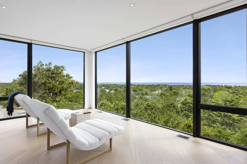 The aerie in the woods is 3.8 miles from the town of Amagansett, and by car, 2.6 miles from Atlantic Avenue Beach, 3.3 from Napeague Ocean Beach and 3.2 from Amagansett Beach. Nearby are Indian Wells Beach, Amagansett Golf Club, Dennistown Bell Park and the dog-friendly Napeague State Park.