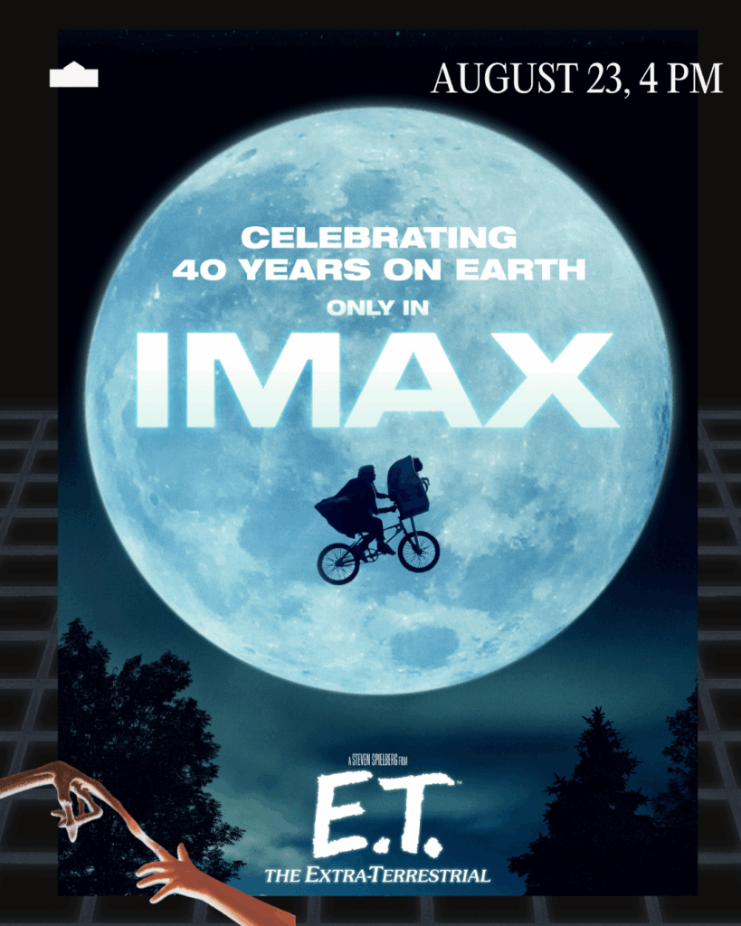 E.T. The Extra-Terrestrial like never before. In stunning IMAX. Part of our 80s blockbuster classics,