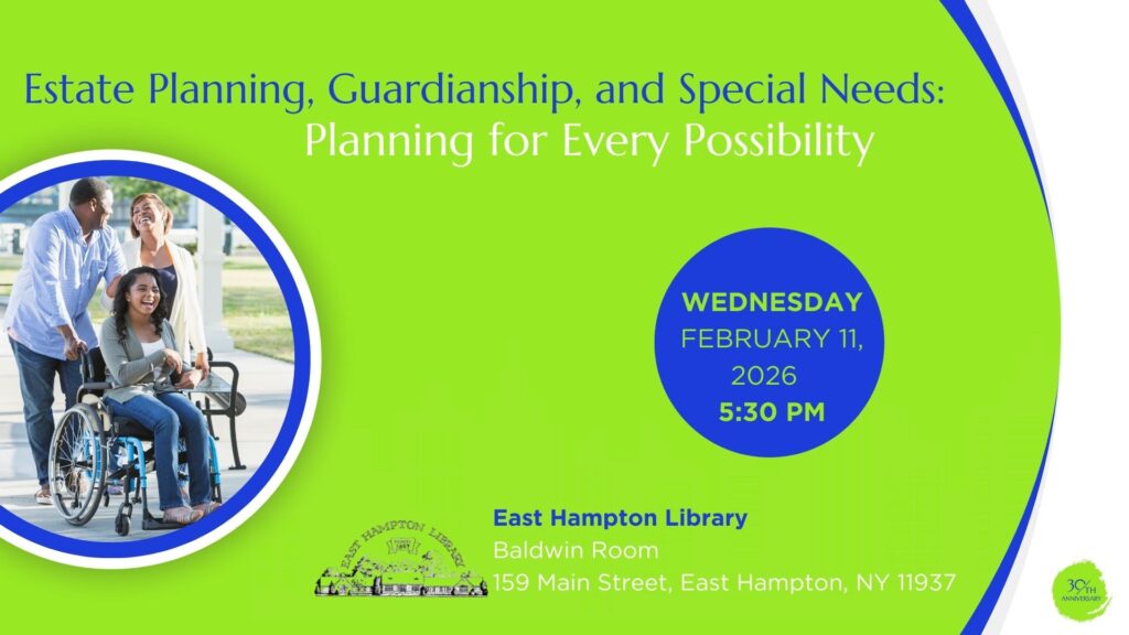 us at the East Hampton Library for an informative discussion on Estate Planning