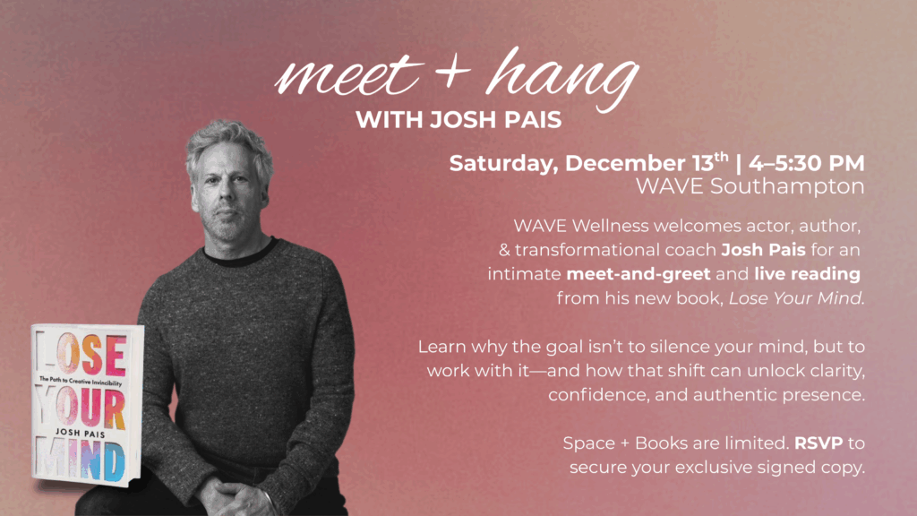 WAVE Wellness is honored to welcome actor, author, and transformational coach Josh Pais for an intimate meet-and-greet and live reading from his groundbreaking new book, Lose Your Mind: The Path to Creative Invincibility.