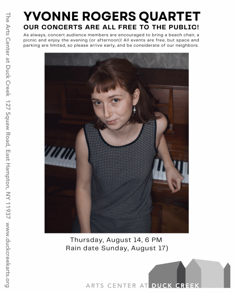 The Arts Center at Duck Creek is pleased to present the Yvonne Rogers Quartet on Thursday, August 14 at 6 PM, as part of our 2025 New Music Series, curated by Peter Watrous.
